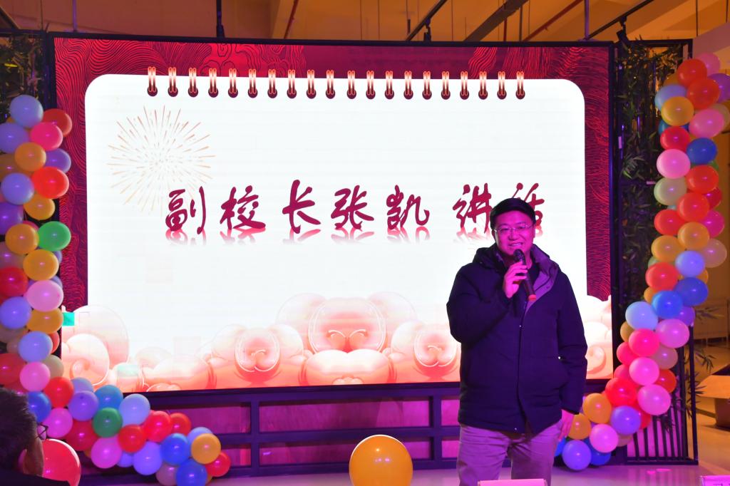 张凯向学院全体老师送上节日问候和祝福,肯定了学院在过去一年中在党建思政、人才工作、教学科研、社会服务和学生管理等方面取得的成绩和进步,并勉励全体教师在新的一年里再接再厉,为学校和学院的高质量发展贡献力量。