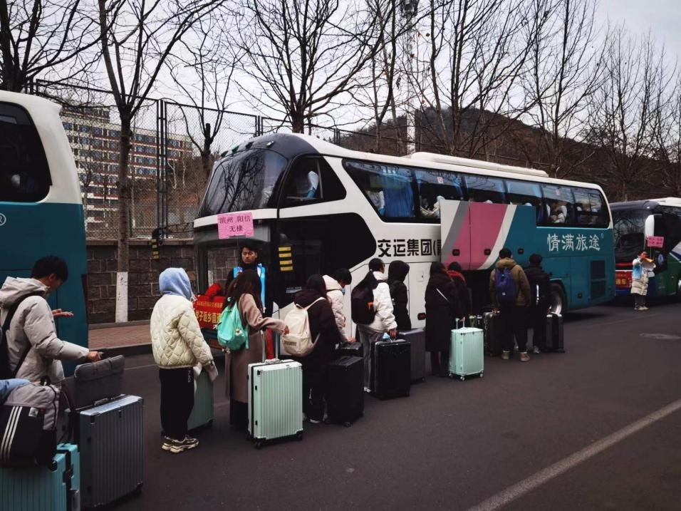 此次“学子返乡直通车”根据学生的主要出行路线,共开设9条定制专线,由学校直达省内各地市,方便快捷,大大节省了学生们的返程时间,用实际行动增强了学生的幸福感和满足感。今后,团委将持续引导广大团学干部用心用情办妥难事、办成实事,打通教育学生、服务学生、凝聚学生的“最后一公里”。(撰稿:臧瑶瑶;审核:王鹏飞)