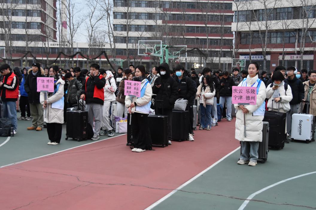清晨,万籁俱寂,学生会和研究生会志愿者们早早到达乘车点,在凛冽寒风中穿梭在指定岗位,有序开展志愿服务。他们引导学生按照返乡线路有序排队、统一乘车,帮助学生搬运行李,展现积极服务学生的良好风貌,为学生返乡路上增添了一抹温暖的色彩。商学院商研223班孙旭彤表示,作为一名“学子返乡直通车”的志愿者,希望通过本次志愿服务,能够温暖学子们的回家之路,今后我将继续保持初心与热爱,弘扬“奉献、友爱、互助、进步”的志愿精神,用青春奉献践行当代青年的使命担当。“直通车真的很方便,从校门口到家门口,避免了行李来回搬运、不停地转站。乘车时遇到很多志愿者帮助我们引路、搬行李,很感谢学校的暖心安排和志愿者同学在寒冷的冬天给我们带来的温暖!”人文与外国语学院网新221班史雨凡说道。