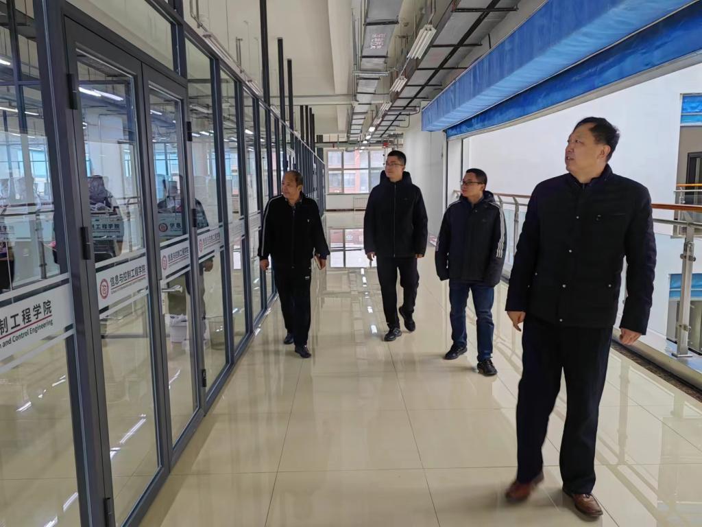 座谈会后,赵景波、秦臻等学院领导老师陪同赵士龙、刘君虎参观了学院实验室与学生创新实践基地和学术研究与社会服务中心。在学生创新实践基地,企业一行与正在留校准备做科创比赛的学生进行了交流;在学院学术研究与社会服务中心,双方就空间布局规划与设计进行了深入的交流讨论,共同探讨了如何更好地利用这些空间资源为合作企业和在校生提供更优质的服务和帮助。