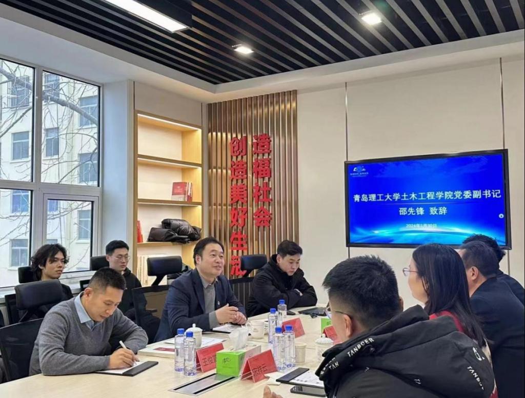 在中建三局北京公司山东分公司,邵先锋与项目经理王汉卫校友围绕人才培养、教学科研、产教融合等方面进行深入交流,双方签订《青岛理工大学就业创业实践基地合作意向书》。大家与在公司工作的学院历届校友聂双鲁、孔德明、丁宽、毛国梁等进行热情交流,鼓励他们发挥好传帮带作用,为就业工作发挥积极作用。