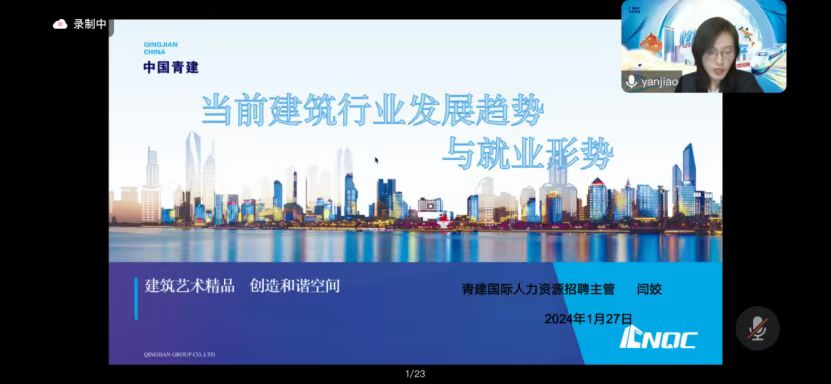 1月27日晚,学院邀请青建国际集团招聘主管闫姣主讲当前建筑行业的发展趋势与就业形势,她根据当前经济环境下遇到的瓶颈和新的发展态势,从明确职业目标、端正求职态度、掌握求职技巧、保持积极心态、提高综合素质等方面给毕业生提出建议,引导家长们帮助学生正确看待当前的就业形势并把握就业机会,家校协同形成促就业合力。