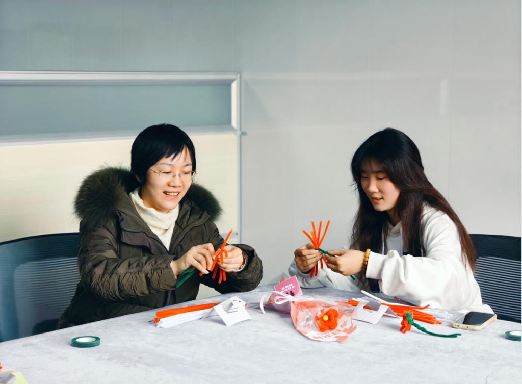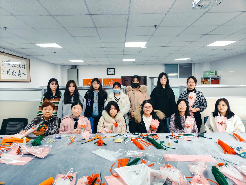3月6日下午,学院分工会在信控楼207举办“送你一朵小红花”手工制作DIY小红花活动,邀请学院党委书记高洁、女教职工代表、学生志愿者们共同制作“小红花”。学生志愿者从花瓣如何捏起开始,到叶子如何卷,再到将花瓣与叶子合成在一起,详细地给大家介绍并演示了“小红花”手工艺的制作过程。经过几个小时的精心制作,在大家灵巧的双手下,一朵朵形态各异、各具特色的“小红花”诞生了。自动化教研室王瑞华老师说道:“没想到自己居然可以做出来这么好看的玫瑰花,这个活动太有意义了。”