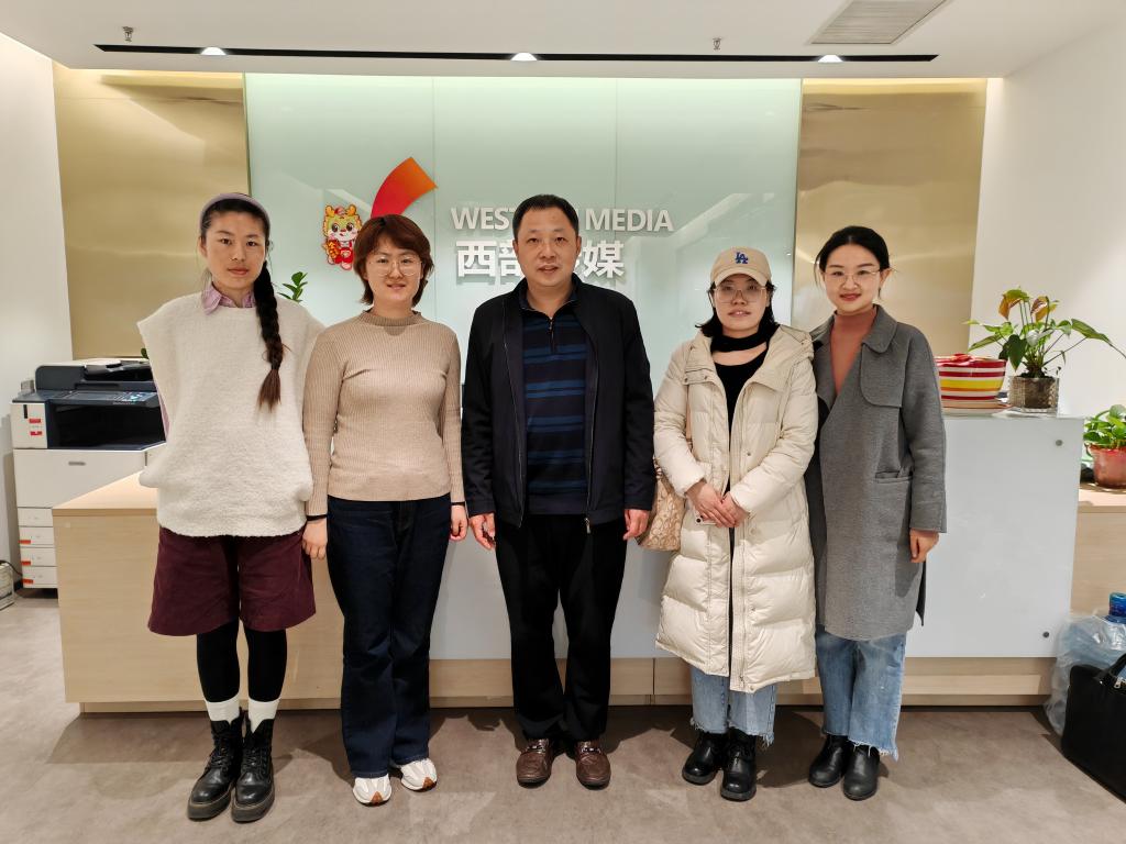 在陕西文投丝路西部文化传媒有限公司,公司综合部部长蒲健彤、综合部部长助理王硕、会展部设计总监刘莉与学院教师座谈交流。蒲健彤对学院教师来访表示热烈欢迎,她介绍了企业发展现状、主营业务、企业文化、人才培养等方面的情况,希望双方能够在人才招聘、实习实训、项目合作等方面加深合作,共同助力学生成长成才,助推企业发展再创辉煌,促进校企育人成果再创新高。徐佐君从师资力量、学生规模、学科布局、科研特色等方面介绍了学院的详细情况,希望双方在实习就业方面加深合作,在科研合作方面加强交流,企业结合发展难题出题,学院结合企业需求解题,解决实际困难,打造校企合作品牌特色。