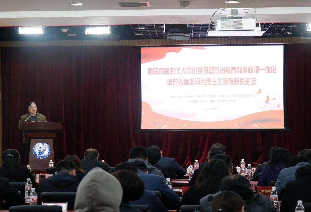 3月23日,“青岛市新时代大中小学思想政治教育和思政课一体化暨在青高校马克思主义学院院长论坛”在中国石油大学(华东)举行。此次论坛汇聚了青岛市新时代大中小学思想政治教育和思政课一体化建设推进指导中心领导成员、全市各大中小学思政课一体化建设共同体单位负责人、各高校马克思主义学院院长、师生代表等200余人,马克思主义学院党总支书记陈国庆、院长华章琳、院长助理石峰、史倩教授受邀参加。