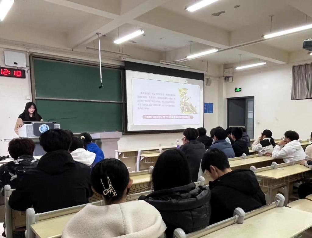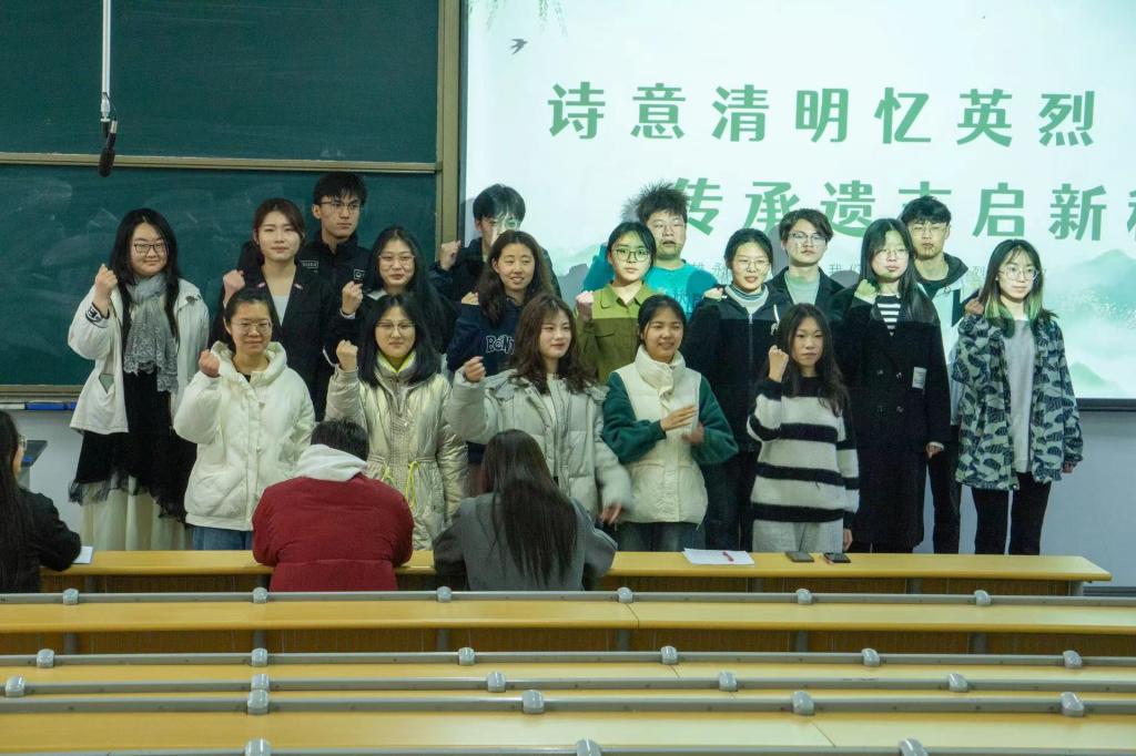 管理工程学院追梦社理论宣讲团组织新发展团员青年同上一堂“清明思政课”。课堂上,学生们神情肃穆,怀着对先烈的哀悼与敬仰,重温党的光辉历程,感悟英烈精神,进一步坚定了青年学生的初心使命和理想信念。同学们认真聆听革命先烈们的光荣和事迹,深切感知革命成果与和平安定的来之不易。“追梦社”宗鑫钰同学表示,救亡图存的先辈英雄们用坚韧不屈的脊梁和烽火相传的意志,守卫着我们如今的青山耸翠、山河无恙,无数革命先辈为了让这片古老的土地走向光明,燃烧自己的青春岁月,献出了自己宝贵的生命。我们要牢记历史、不忘过去,吃苦耐劳、艰苦奋斗,坚定红色信仰,在新征程上履行好时代新人的光荣使命。
