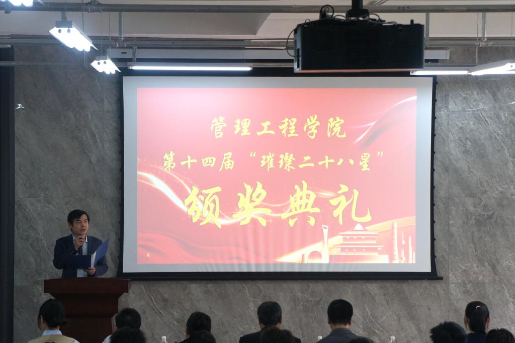 为树立先进典型,聚焦朋辈引领,发挥榜样力量,4月10日,管理工程学院举办第十四届群星璀璨之“管院二十八星”颁奖典礼,学院党委书记李洪民,党委副书记、副院长王中帅,副院长万鹏及各年级辅导员,2023级学生代表200余人参加典礼。典礼由学院团委书记宋晓峰主持。
