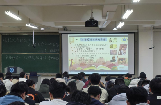 推出名师讲座,鼓励引导大学生阅读名著。商学院学生社团青出语蓝文联邀请山东省演讲学会常务理事、人文与外国语学院潘玲副教授,推出“根植优秀传统文化,品悟文学经典著作”名师讲座系列活动之读书创造幸福,全校300余名学生通过线上与线下方式参与活动。潘玲深刻阐述了读书与幸福的关系,从“为什么要读名著”等方面展开论述,向学生推荐经典读书篇目,号召全体同学阅读名著,进而达到“我读书,我快乐,我智慧”的境界,在场同学们纷纷表示通过讲座对阅读有了新的体会,受益匪浅。