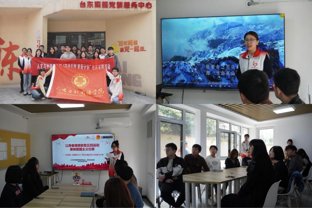 近日,人文与外国语学院组织“红色之声”宣讲团成员分别前往南岛社区、台东商圈党群服务中心开展青春心向党“五四”青年节红色宣讲活动。志愿者们以五四精神为主题,以青年阵地为讲台,以青春视角设计沉浸式宣讲,用青言青语讲好中国故事,彰显人外学子们一心向党,逐梦青春的昂扬斗志。