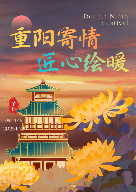 10月27日,学院举办“重阳寄情·匠心绘暖”主题海报设计大赛,邀学子以画笔传递温情,以匠心描绘敬意,或以古建筑为背景,勾勒传统与现代交融之美;或以登高、赏菊为灵感,将孝心祝福融于笔,学生们以海报为媒,于创作中深化重阳文化认知,在笔墨间传递尊老爱老的时代温度,为秋日校园添一抹暖意与情怀。