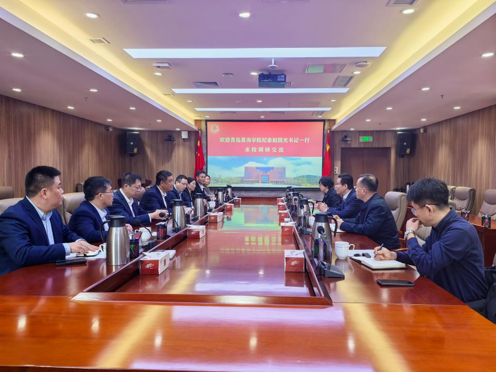 赵国光对学校的热情接待表示感谢,他简要介绍了青岛黄海学院纪委成立以来的基本情况,希望两校依托地缘相近、人脉相通优势,进一步加强沟通交流,共同推动两校纪检监察工作发展取得新成效。