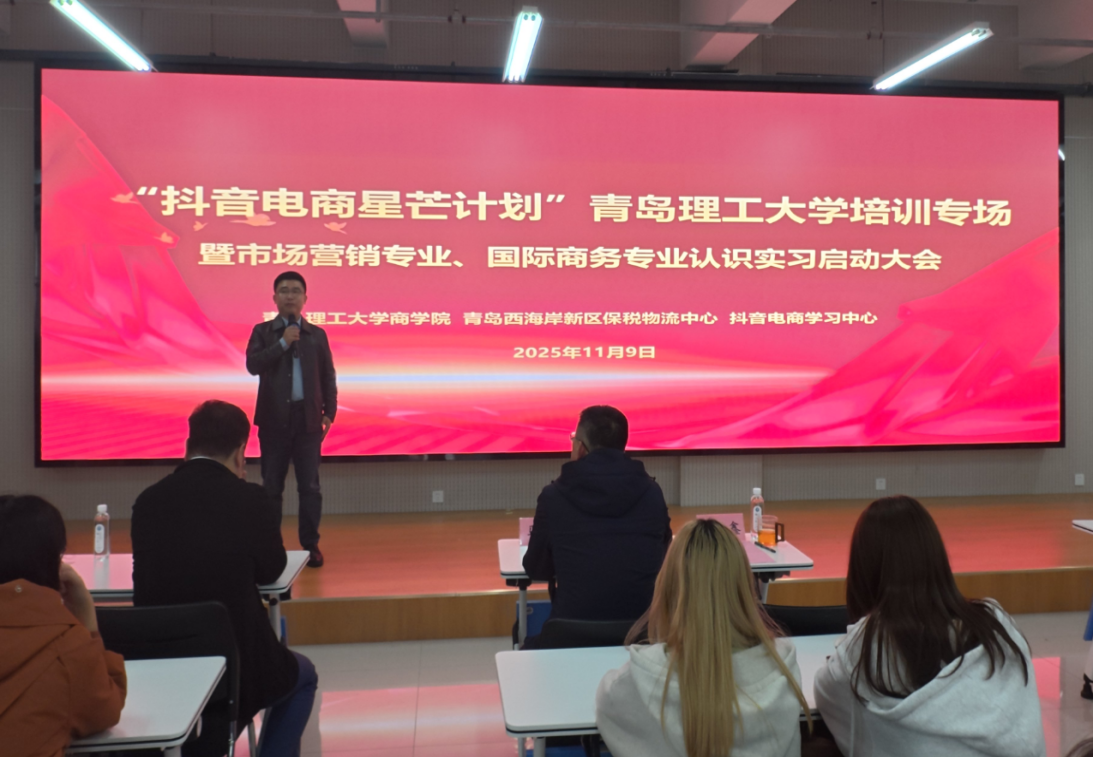 此次“抖音电商星芒计划”青岛理工大学培训专场暨市场营销、国际商务专业认识实习启动大会的顺利举办,不仅搭建起高校、企业与头部电商平台深度合作的坚实桥梁,更为专业人才培养注入了产业实践的鲜活动能。接下来,学院将以此次培训为契机,加强与抖音电商学习中心与保税物流中心协同合作,持续提升教师实践实训、跨境资源对接等方面的技能,助力学生在数智电商浪潮中锤炼本领、成长成才,共同书写产教融合、协同育人的崭新篇章。(撰稿:韩杰;审核:云乐鑫)