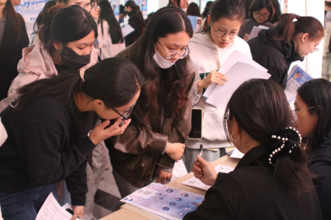 现场气氛热烈,人潮涌动。学院715名2026届毕业生踊跃投递简历,积极与用人单位代表沟通交流,主动了解岗位需求与发展前景,充分展现了商院学子积极的就业态度和饱满的精神风貌。