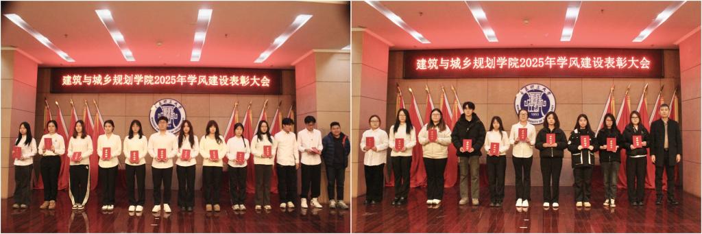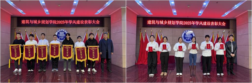 本次优良学风表彰大会既是对建筑与城乡规划学院2025年学风建设成果的集中展示和对先进典型的隆重褒奖,也是对学院全体师生的有力动员。全院师生将以此次表彰大会为新的起点,凝心聚力,携手共进,持续深化学风建设,推动学院人才培养质量和学科发展再上新台阶,为学校建设国内一流应用研究型理工大学贡献力量。(撰稿:朱华建;审核:吕楠、王中帅)