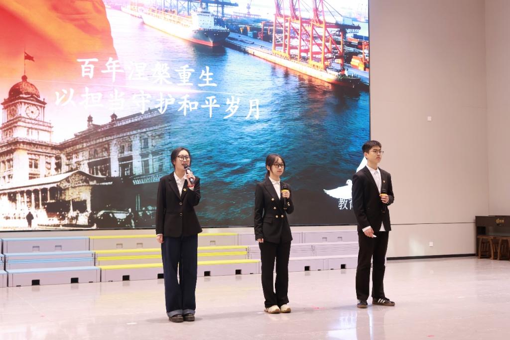 聘任仪式结束后,“青·理宣讲团”成员王坤、董凯月、王洪斌以“铭记青岛战史 传承家国精神”为题进行主题宣讲。他们分别从“一战遗址”的历史记忆、革命先辈的英勇事迹、当代奋斗者的鲜活故事三个部分回望青岛百年沧桑历程,引导在场青少年学生从历史与现实的交汇中汲取奋进力量。“星火领航员”的“现场教学”赢得了在场师生的热烈掌声。