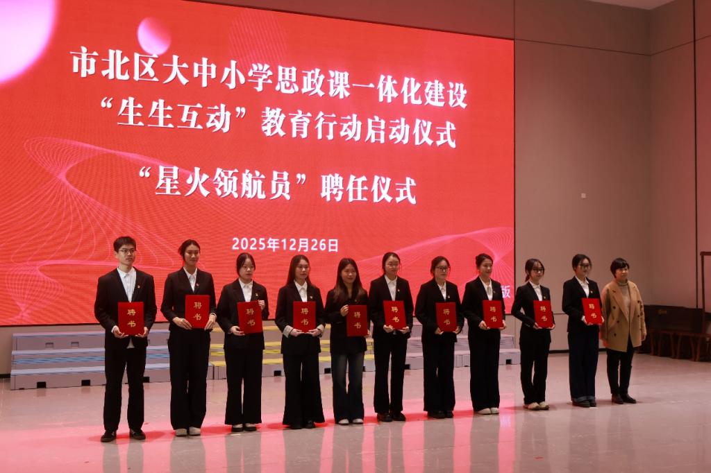 仪式上,翟春燕为“星火领航员”代表颁发聘书。“星火领航员”将以饱满的热情、扎实的理论素养和务实的行动投入到思政育人实践中,为打通大中小学思政课一体化建设的“最后一公里”注入青年力量。