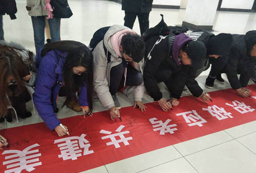 为严肃考风考纪,加强学生诚信考试意识,1月4日上午,高等职业学院在长江路校区二教开展“文明诚信 积极应考 共建美丽校园”横幅签名活动。全体在校学生参加活动。