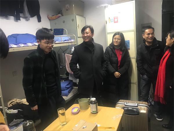 2月24日、25日,环境与市政工程学院党总支书记马莉、院长毕学军、党总支副书记邵长飞带领辅导员来到1公寓、2公寓、3公寓、甲楼和宏业大学生公寓走访学生宿舍,看望返校学生。