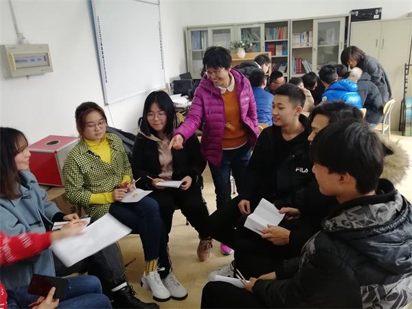 活动伊始,房玉佩让同学们通过参与“刮大风”、“接龙”、“捶背”游戏进行破冰,同学们反应热烈,现场气氛立刻活跃起来。随后,在房玉佩的指导下,每个人在白纸上画出过去或者现在以及未来的自己,然后分为几个小组向其他人展示。大家开动脑筋,奇思妙想,通过形象生动的画作展示了丰富多彩的理想自我以及目前的个人特点。接着针对“父母眼中的自己”、“知己朋友眼中的自己”、“自己眼中的自己”、“你的价值观和信念”等主题,以小组为单位表达自己并接受其他同学的评价。整个过程中,同学们热情高涨,积极参与各个环节的活动,与老师、同学充分交流。最后,房玉佩对此次团体辅导进行了总结,并强调了大学生认识自我对未来发展的重要性,鼓励同学们要不断认识自我、完善自我,突破自我,从而不断成长进步。