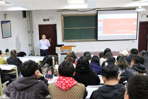 为做好学校第三次党代会精神的学习宣传和贯彻落实,商学院于3月7日、3月8日组织辅导员开展“学校第三次党代会精神”理论宣讲公开课,学院党总支副书记董兰国、学工办主任兼分团委书记林丰艳、辅导员薛诚首轮宣讲,累计400余学生参加。