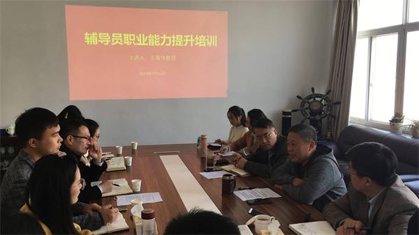 为做好新时代背景下大学生思想政治教育工作,加强辅导员队伍专业化、职业化建设,3月15日上午,人文与外国语学院举行第六期辅导员沙龙暨辅导员能力提升系列培训,邀请马克思主义学院党总支书记王菁华教授担任主讲,同时邀请管理工程学院党总支副书记于利俊,管理工程学院学工办主任、分团委书记陈永亮以及各位辅导员一起学习研讨,人文与外国语学院党总支副书记王振主持会议。