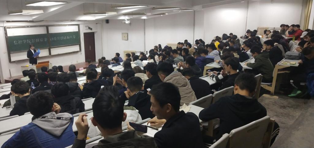为落实“美丽校园”建设工程,巩固学院“美丽校园魅力信控”公寓文化品牌建设成果,加强公寓育人阵地建设,3月21日晚,信息与控制工程学院在长江路校区召开2018级学生宿舍达标升级动员大会。学院党总支副书记曲良波,2018级辅导员高艺轩、刘荣稳、王超、李健萍及2018级全体宿舍长参加了会议。