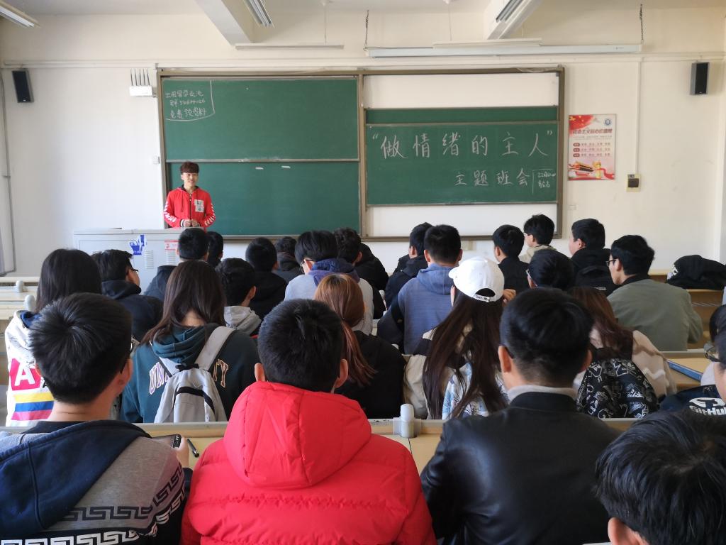 软件184和电气172班班会主题为《做情绪的主人》,班会上全体同学在收看了上学期学院举办的心理名家公益讲座录像,然后就如何化解不良情绪展开讨论,班会气氛热烈浓厚。信息163心理宣传员韦苏伦以图文并茂的生动形式给全班做了《幸福是什么》的主题报告,深受同学好评。