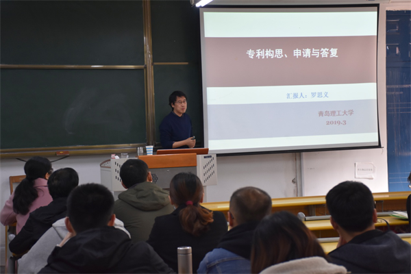 罗思义首先对专利的类型做了简单介绍,重点讲解了发明和实用新型专利的申请、审查流程,并结合多年申请专利的经验,列出多个专利申请可能存在的误区,最后在“如何挖掘专利方向”,“什么是创造性法定评判标准”等问题上分享了自己的宝贵经验。在答疑环节中,现场师生踊跃提问,罗思义一一解答,与师生进行了深入的讨论和交流。