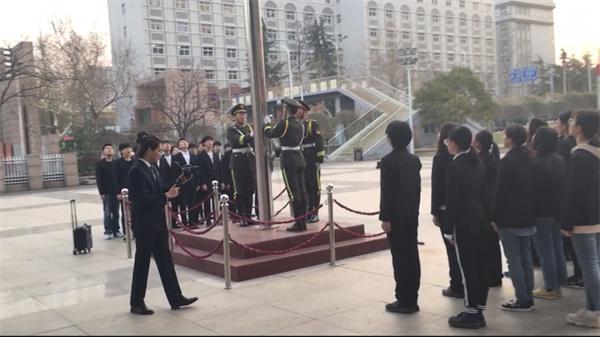 活动中,所有学生穿着正装,以表达对国旗的尊敬以及对祖国的虔诚之心。整个过程充满仪式感,纪律严正,全班分成两队分别站在升旗台两侧。伴随着激昂的《义勇军进行曲》,全体同学齐唱国歌,五星红旗在庄严注目中冉冉升起,承载着新的希望,激发着青年不断向上的斗志。参加了本次活动的孙畅同学说:“当国旗在蔚蓝的上空随风飘起时,心中的爱国之情油然产生。学习生活中正是需要这种庄重的活动,需要这种仪式感,才更能让我们铭记历史,活在当下,珍惜时间。”