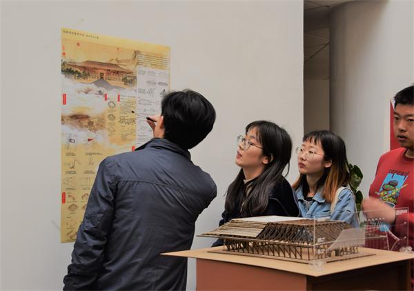 在建筑馆三楼中厅,同学们的作品展示着建筑图纸及建筑模型,并对模型附以详细的结构介绍。展评中,同学们首先向老师们阐述自己的作业,从模型的制作过程,制作方法以及体现的结构概念等方面将作品完善的表达出来。听完学生对于作业的讲解,专业老师们针对同学们的作业指出其优缺点,为每一个同学的设计图做出了细致点评,同学们认真聆听并详细记录,大厅中学术氛围十分浓厚。各位老师对每组模型的优缺点进行了专业严谨的点评,鼓励同学们尝试不同的建筑风格,加强基本功的训练,灵活运用所学知识。同学们在不同导师组的交流中相互学习,取长补短,极大提升了专业素养,为今后的作业打下坚实的基础。