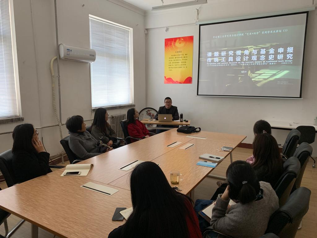 4月17日,艺术与设计学院在市北校区2教228会议室举办学院2019年度“艺术+科学”系列学术大讲坛第一讲,邀请朱宏轩老师做题为“课题研究视角及基金申报-以传统工具设计观念史研究为例”的专题讲座。