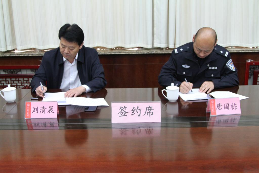 4月22日上午,我校临沂校区与费县公安局新城派出所警校共建签约仪式在办公楼二楼会议室举行,校区管理委员会副主任刘清晨和新城派出所所长唐国栋代表警校双方签约,校区办公室、保卫部、学生工作部、总务部相关负责同志参加仪式。