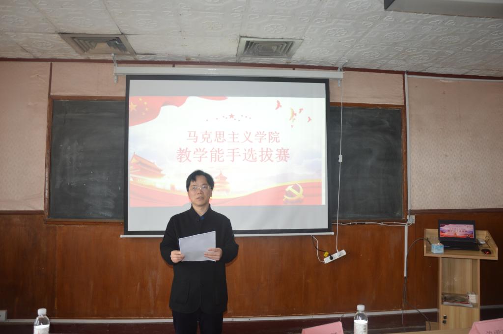 为深入贯彻习近平总书记在全国思政课教师座谈会上的讲话精神,促进青年教师钻研业务,相互学习,相互提高,提升思政课课堂教学质量,4月24日下午,马克思主义学院在长江路校区学院会议室举办了思政课青年教师教学能手竞赛。学校教学督导姜雪洁、叶林,教务处副处长孙勇、商学院副院长胡保玲、马克思主义学院副院长华章琳担任评委,马克思主义学院部分师生20余人观摩了此次比赛。比赛由马克思主义学院副院长华章琳主持。