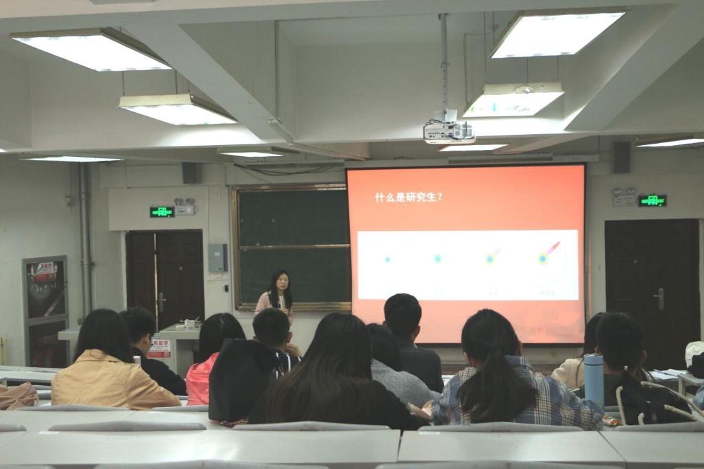 在本次专题讲座中,徐希以别具一格的自我介绍开场,从研究生生活中的多个角度进行讲解。通过自身硕、博六年的科研经历和感悟,告诫同学们首先应当在研究生阶段树立明确的目标,并希望同学们能够趁着青春年华,为自己的目标努力奋斗。其次,鼓励同学们多进行跨学科的交流与沟通,多听取不同于本身专业背景的学术报告等,在不同学科背景下的交流更容易激起思想的火花。最后,徐希表示,导师作为研究生生涯中不可或缺的角色,亦师亦友,同学们在科研过程中遇到瓶颈,应多与导师及时沟通。