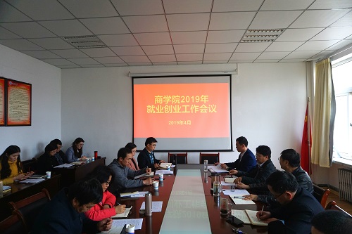 董兰国汇报了2018年商学院就业创业工作情况,传达了学校2019年就业工作会议及谭秀森校长讲话精神,宣读了《商学院就业创业工作领导小组》、《商学院就业创业工作领导联系制度》等文件,并对2019年就业工作形势、当前各专业就业情况、相关政策解读、就业工作难点和重点、围绕就业创业已开展的工作等五个方面进行详细梳理和总结。
