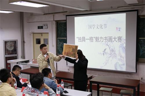 为弘扬中华传统文化,领略国学风韵,颂扬爱国情怀,建设文化书香校园,5月6日晚,人文与外国语学院于二教阶教202举办“独具一格”魅力书画大赛。本次比赛邀请兄弟学院学生会宣传部部长担任评委,学院党总支副书记王振,学工办主任、分团委书记马松参加此次活动。