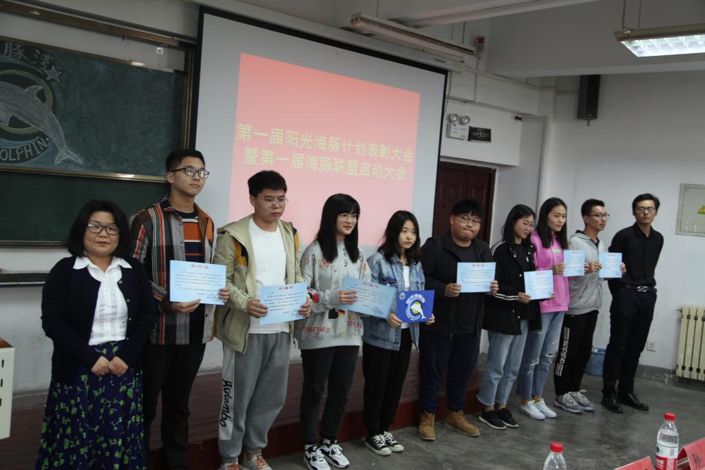 杨洪敏简要介绍了上一期阳光海豚计划取得的成绩,以及在阳光海豚计划基础上成立海豚联盟的目的和意义。在过去的一个学期里,阳光海豚计划所有参与人员平均分提高6.41分,50位海豚挑战者共计消灭挂科95科,多名海豚挑战者实现了0挂科。辅导员王军宣读表彰决定,海豚导师代表向“阳光海豚计划”中表现优秀的海豚领航员、海豚挑战者颁发了商学院院长王曙光教授书写的表扬信和祝福信。