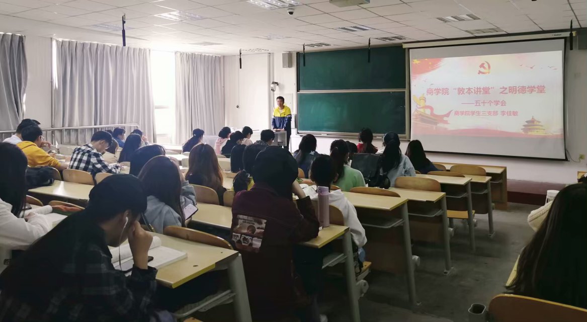 为引导学生树立良好的道德风尚,培养学生优秀品质和行为习惯,5月8日至12日,商学院于二教阶204举办商学院敦本讲堂﹒明德学堂第一讲,学生党员作为主讲人,深入商学院所有班级进行“50个学会”主题宣讲。
