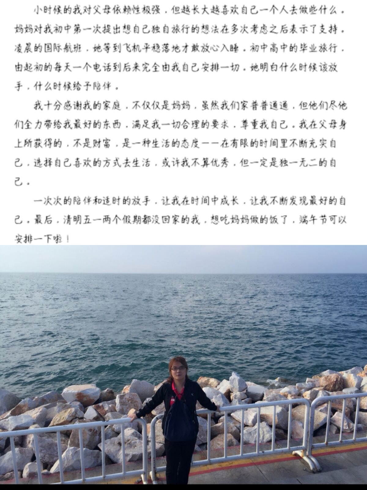 本次活动倡导学生通过文字和图片的形式讲述自己与母亲的故事,回忆母亲对自己多年来的付出和与母亲幸福生活的点点滴滴,传递孩子与母亲之间浓厚的感情,也在母亲节制作一份最好的礼物送给母亲。活动一经公布,就得到了大量同学们的积极响应,同学们热情高涨,纷纷投稿,将自己对母亲的爱通过深情的文字和有爱的图片记录下来。最终,经过多次的认真评定,程璐瑶同学获得一等奖,肖新怡等四名同学分获二、三等奖。程璐瑶在来稿中说到:“你是第一次做妈妈,我是第一次做女儿,我们有时会发生争执,但我们知道彼此深爱。”李熙宁说:“您是女儿的日记本,记录了我的点点滴滴。”同学们的来稿字里行间表现的都是身为儿女对母亲深深的祝福和感激。