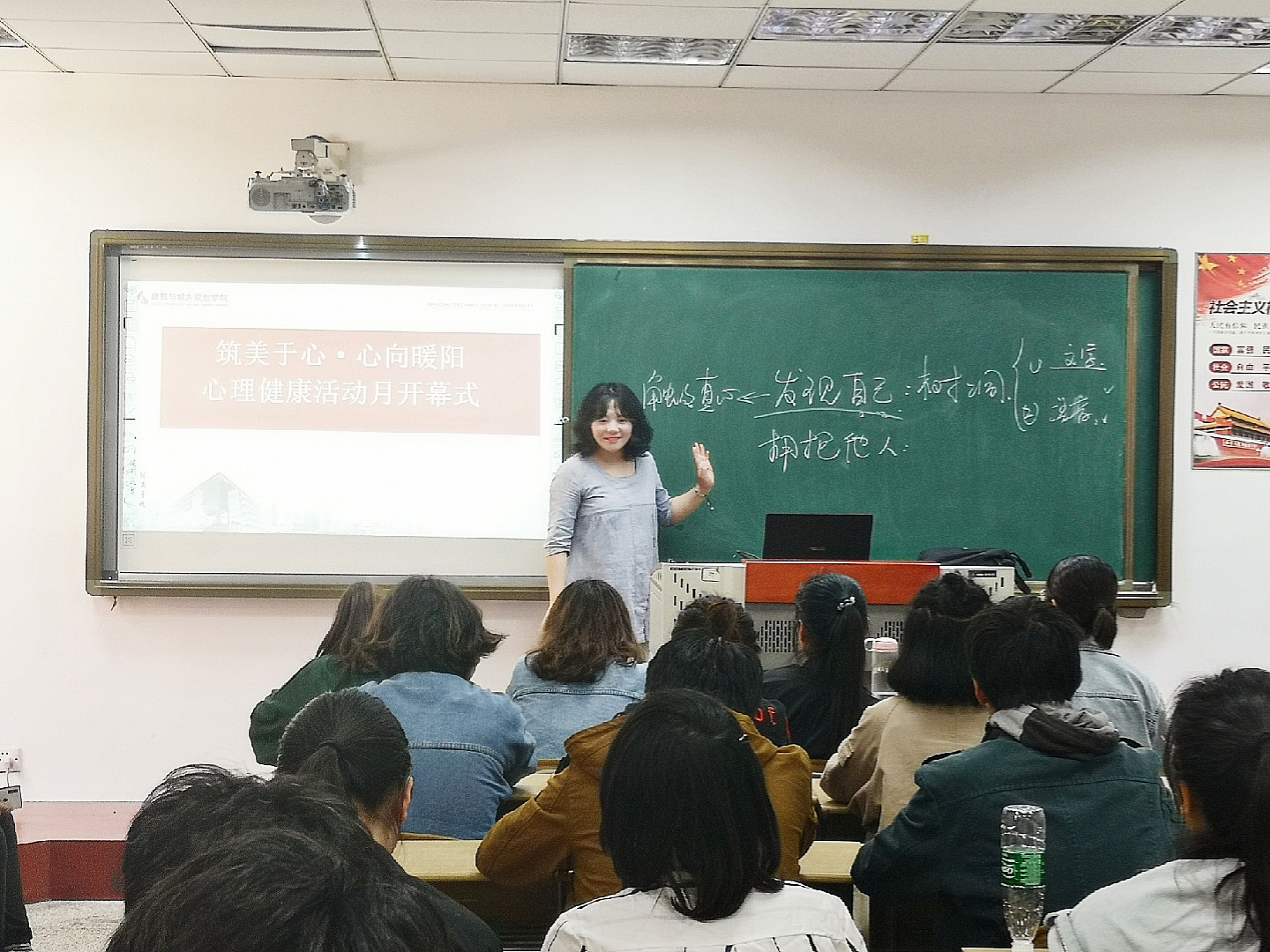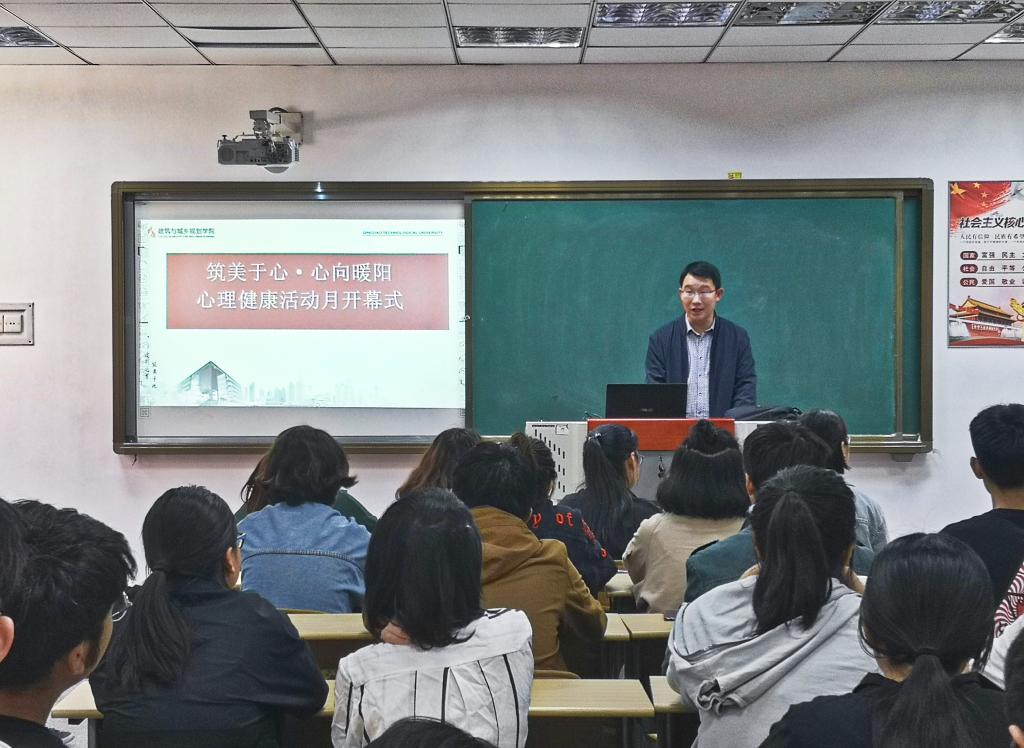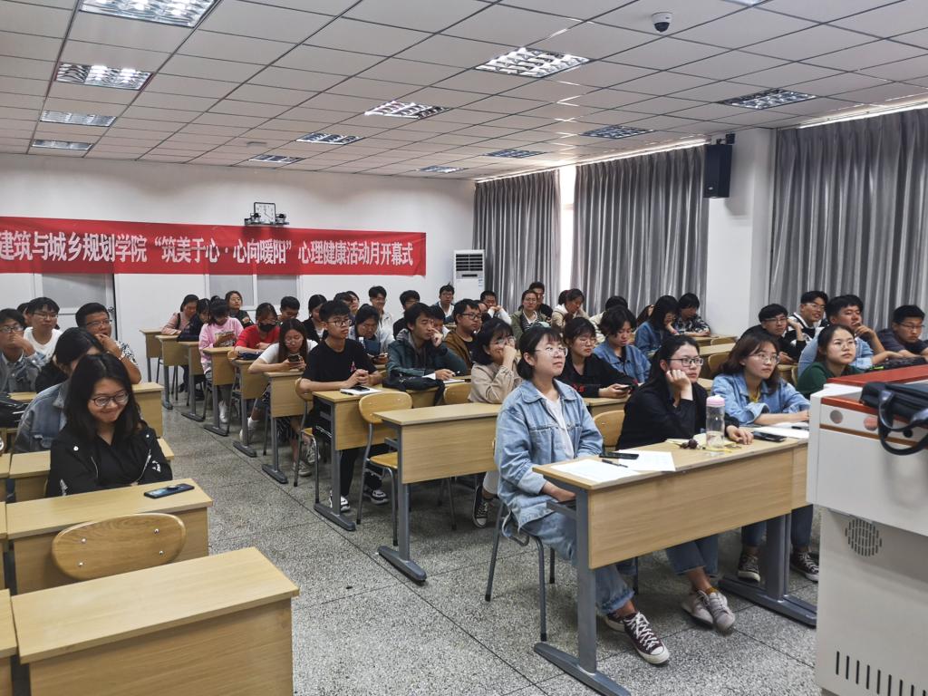 为深入贯彻《高等学校心理健康教育实施纲要》、学校党代会精神,加强和提升学生心理健康教育,培养良好心理品质。5月14日,建筑与城乡规划学院于建筑馆314举行“筑美于心·心向暖阳”心理健康活动月开幕式。学院党总支副书记高江,17级辅导员杨霈宣,18级辅导员王明慧与学院心理协会成员、部分学生代表共同参与了本次开幕式,开幕式由王明慧主持。