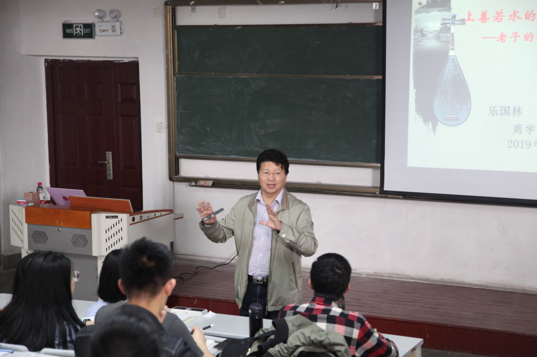 为对学生进行传统文化教育,提高学生综合素质,5月15日下午,商学院于二教阶204教室举办“潮头”讲堂暨2019年“理工大讲堂”第二讲,商学院副院长乐国林做《上善若水的人生思考:老子的教诲》专题讲座。讲座由商学院辅导员薛诚主持,学院全体学生工作干部及150余名学生参加了本次活动。