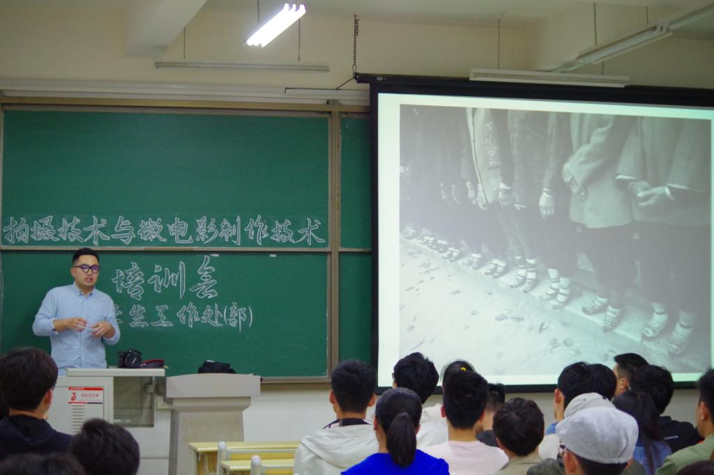 为更好的开展大学生网络思政教育工作,提高网络宣传质量,5月15日下午,由学生工作处主办的拍摄技术与微电影制作技术培训会在嘉陵江路校区举行。本次培训由我校刘田老师、北京电影学院现代创意媒体学院导演系孙宁盟主讲,各学院从事新媒体创作工作的100余名学生参加。