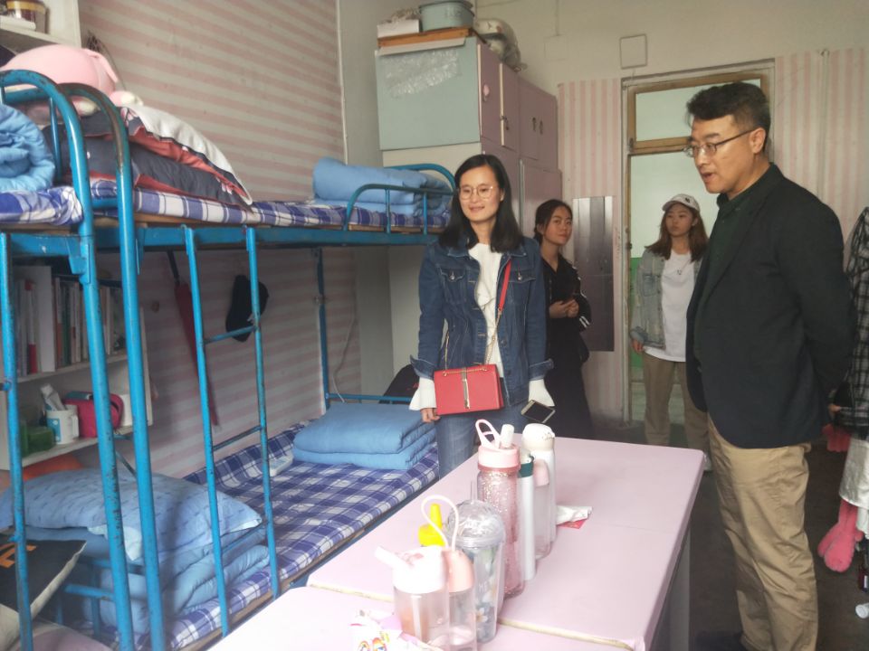 5月15日,人文与外国语学院党总支副书记王振,辅导员陈刚、辛雪梅来到1公寓、2公寓、4公寓、5公寓学生公寓,深入走访学生宿舍。