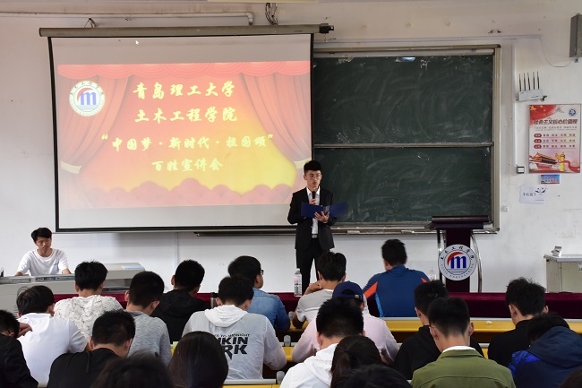 5月5日下午,土木工程学院于一教三阶北举办以“中国梦·新时代·祖国颂”为主题的宣讲活动,本次活动邀请到我校青年宣讲团成员贾延森、李鑫瀛为同学们宣讲习近平新时代中国特色社会主义思想和党的十九大精神,学院学生工作办公室主任、分团委书记王中帅,辅导员杜诗琳、马蓉蓉、徐杨杨参加本次活动。
