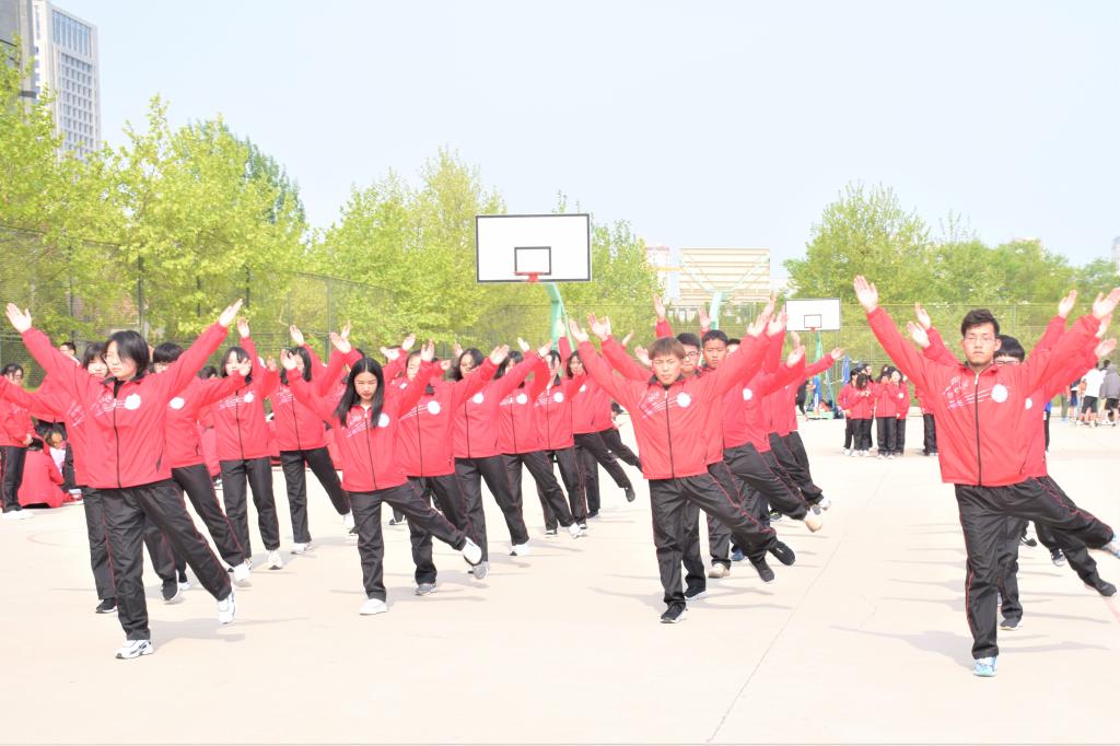 比赛中,各班成员精神抖擞、气宇轩昂,从伸展运动到整理运动,一伸手,一抬腿,每一式都刚劲有力,把广播体操的简单规范、明快流畅、横平竖直的风格特点展露无遗,向在场所有人展示了拼搏进取、团结一致的向上精神。