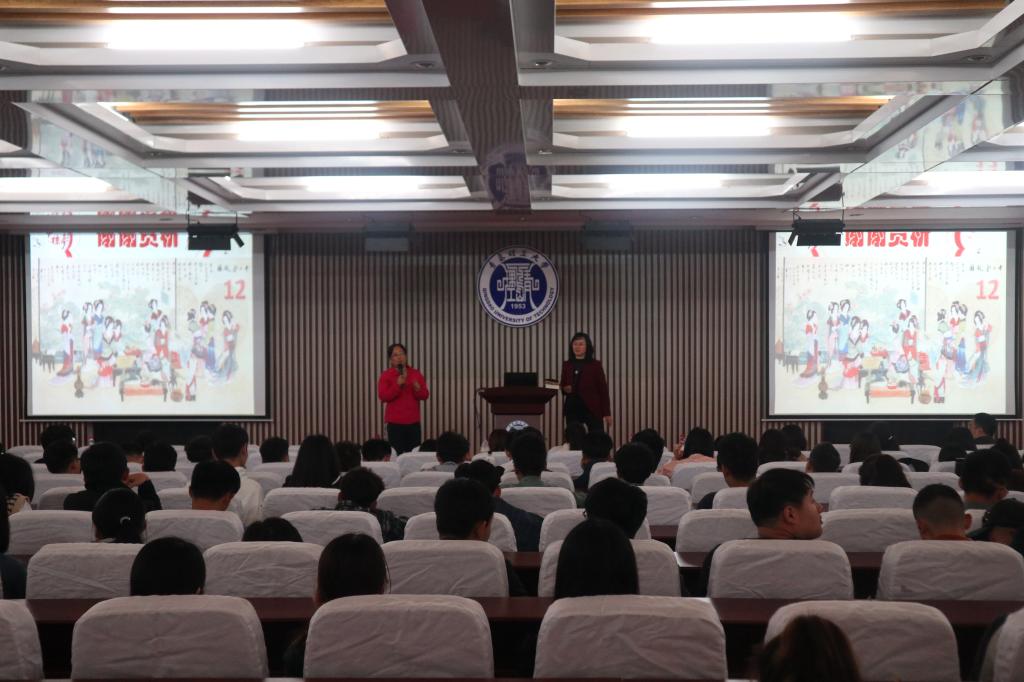 5月15日,理学院在嘉陵江路校区报告厅举办“人文大讲坛”。我校汉语言文学专业教师、山东省演讲与口才学会常务理事潘玲副教授应邀作“红楼梦是打开生活之门的金钥匙”专题讲座。理学院党总支书记邹传波、副书记刘聘,分团委书记李晓辉以及学院300余名师生参加本次讲座。