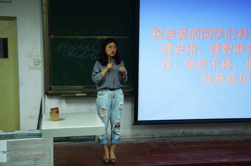 随后,高合顺教授从考研原因、考研考公的比较、研究生考试现状及如何确定报考专业等几个方面进行了全方位的剖析和指导,讲解有趣到位,现场气氛热烈。随后,2015级考取外交学院国际关系专业于雅楠、首都师范大学古代文学专业王徐凤、华东理工大学英语笔译专业王帅鑫、暨南大学英语笔译专业高洋、中国人民大学社会工作专业张凯宁依次上台分享考研经验。于雅楠从时间规划和安排上给大家提出建议;王徐凤从“先建森林后种树木”角度,强调计划和总结具有重要意义,并建议大家寻找互帮互助的研友;王帅鑫着重分享英语笔译备考经验;周嘉慧和高洋分别在日语口译练习和政治备考方向给予指导;张凯宁表示在备考过程中要及时总结、对比记忆,机会是留给有准备的人的。