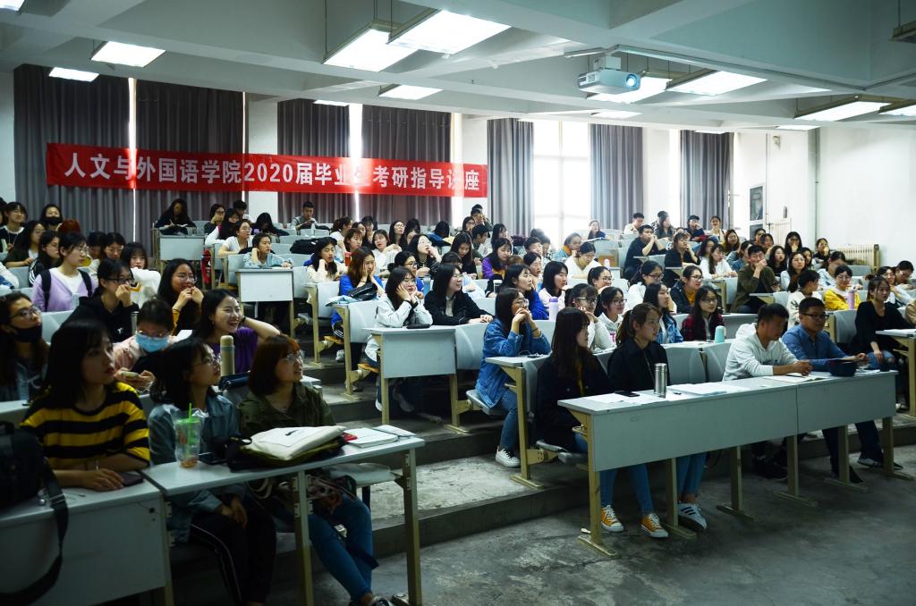 为引导学生树立正确的考研观,科学规划考研之路,增强学生就业意识,提高就业质量。5月16日下午4时,人文与外国语学院在长江路校区二教阶教201举办2020届毕业生考研指导讲座。此次讲座由人文与外国语学院学工办主任、分团委书记马松主持,邀请英语专业教研室教授、英语141班班主任高合顺为同学们作专题讲座。2015级6名专业考研优秀学生代表和2016级、2017级近200多名学生参加此次考研讲座活动。