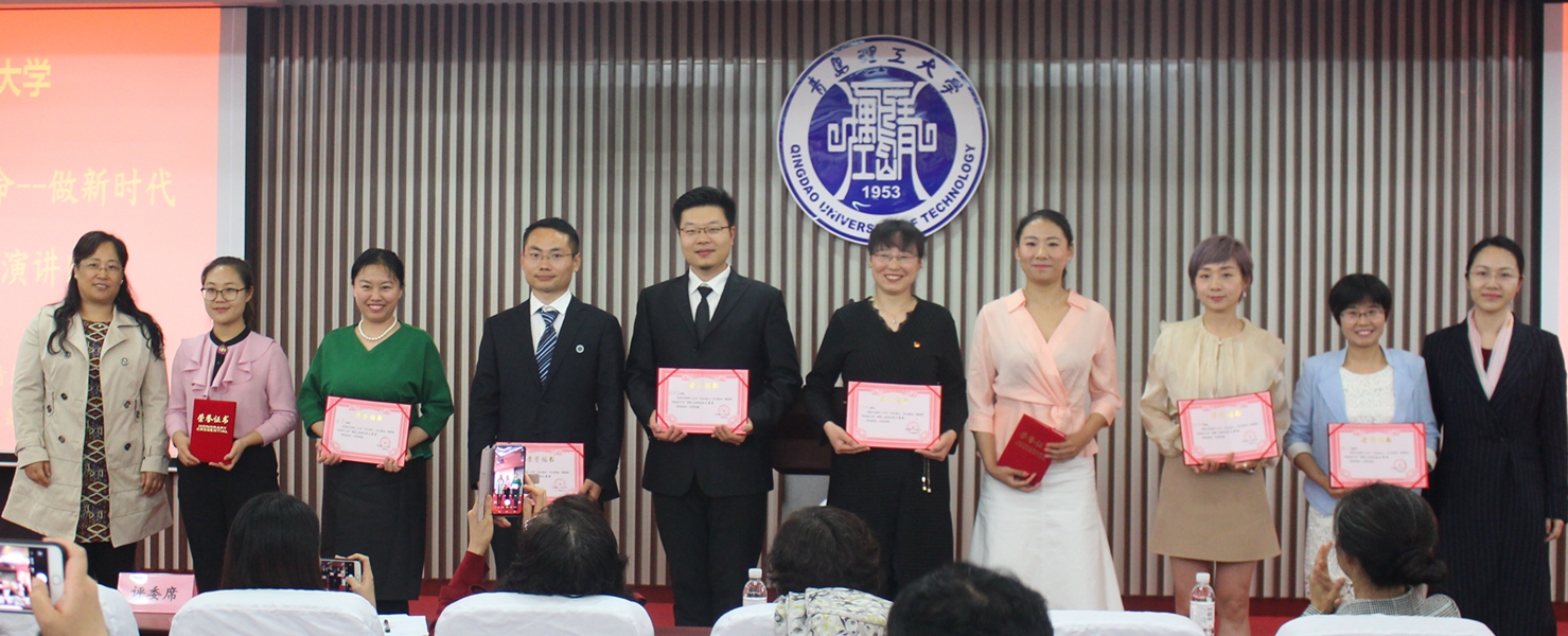 5月17日下午,由校工会主办、演讲与口才协会承办的“不忘初心,牢记使命——做新时代的奋斗者”全校教职工演讲比赛在嘉陵江路校区西报告厅举行。山东省演讲学会副会长及青岛市演讲与演唱协会副主席于宝真、我校人外学院副教授潘玲、校团委书记高洁、环境学院团总支书记张恬以及校委宣传部王妍老师担任本次演讲比赛的评委。