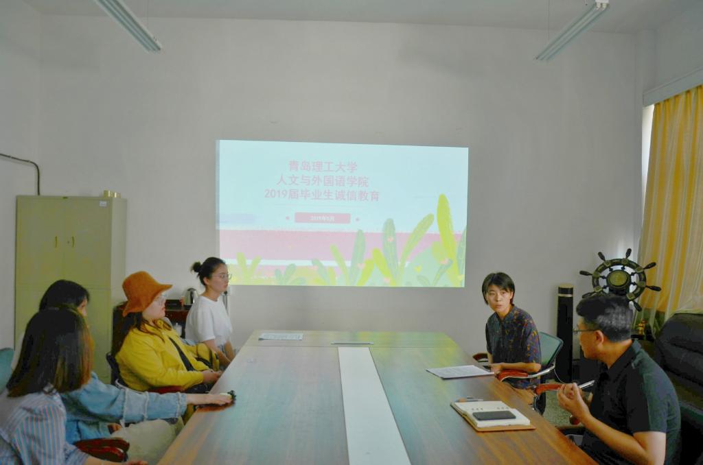 为帮助广大学子切实树立诚信为本的理念,做好学院贷款毕业生的诚信教育工作,促进国家助学贷款工作的有序开展,5月23日,人文与外国语学院于长江路校区一教527开展了毕业生文明离校之毕业生“诚信教育”主题活动。本次活动由辅导员陈刚主持,党总支副书记王振以及2019届助学贷款毕业生参加此次活动。